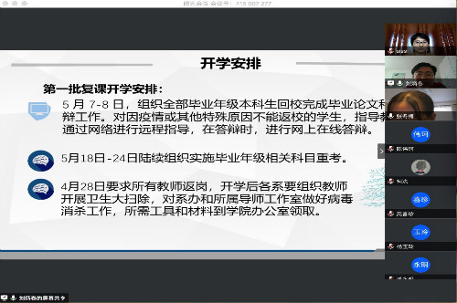 為扎實做好師生返校疫情防控準備工作,提高防范和應(yīng)急處理能力,保障全院師生的生命安全和身體健康,管理學院于4月24日至29日組織各系主任、碩士生導師、行政人員及全院教師分別召開返校復(fù)學工作培訓會議。學院黨委書記張冬梅、院長王京濱分別主持會議并就相關(guān)工作開展部署。