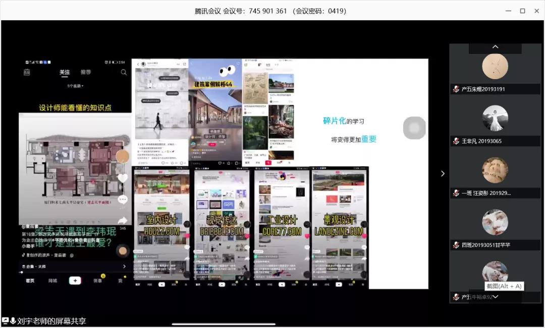 講座中,劉老師圍繞“環(huán)境設計在當代社會發(fā)展的現(xiàn)實作用和未來發(fā)展的趨勢”,幫助同學們分析了專業(yè)發(fā)展趨勢,并解答了設計專業(yè)的同學如何全面的學習和完善自己的知識結(jié)構(gòu)和專業(yè)能力。針對當下的特殊時期,劉老師提到了獨立思考和自我管理的重要性,勉勵同學們“只有積極面對當下,才能更好面對未來”;結(jié)合大數(shù)據(jù)時代信息來源渠道廣且獲取便捷的特點,建議大家通過“碎片時間”進行閱讀學習,關(guān)注設計類的抖音、小紅書、微信公眾號等。在談到如何來面對未來社會需求和行業(yè)的挑戰(zhàn),劉老師提醒同學們要有危機意識,全面發(fā)展技能,并就如何規(guī)劃自己的專業(yè)發(fā)展為同學們提供了專業(yè)的指導與建議。在講座最后,老師為同學們提供了線上答疑時間,大家踴躍參加,課堂氣氛活躍,劉老師就同學們提出的問題一一耐心做了解答,并送出了自己的設計明信片寄送給云端的學生。講座結(jié)束后,同學們表示,講座幫助我了解專業(yè)未來發(fā)展趨勢,對專業(yè)的學習有了更加全面和深入的領會,幫助自己合理規(guī)劃未來以應對行業(yè)挑戰(zhàn)。