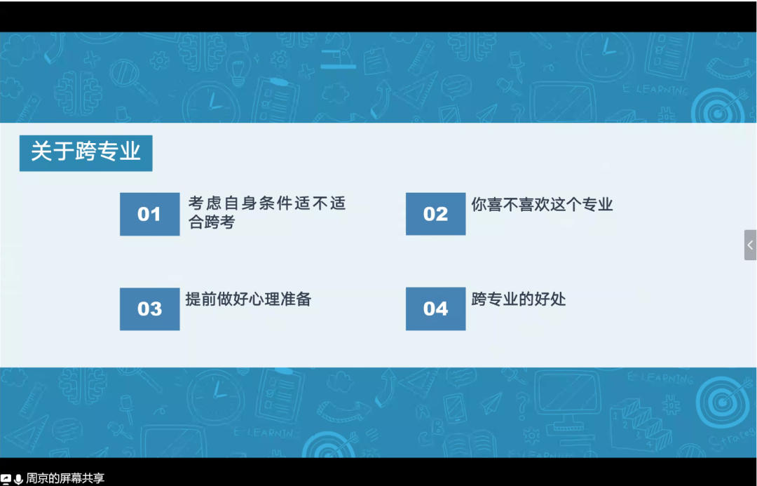 為幫助同學(xué)們明確考研目標(biāo),提高考研熱情,了解更多考研信息,掌握相關(guān)考研技巧,近日,理學(xué)院通過(guò)騰訊會(huì)議舉辦了本專(zhuān)業(yè)、跨專(zhuān)業(yè)考研經(jīng)驗(yàn)交流會(huì)。交流會(huì)邀請(qǐng)了順利考取研究生的2013級(jí)、2014級(jí)、2015級(jí)畢業(yè)生以及2016級(jí)初試成績(jī)較好的同學(xué)與學(xué)弟學(xué)妹們進(jìn)行線上分享。輔導(dǎo)員老師、2017級(jí)準(zhǔn)備參加考研的學(xué)生以及2018、2019級(jí)部分學(xué)生參加活動(dòng)。
