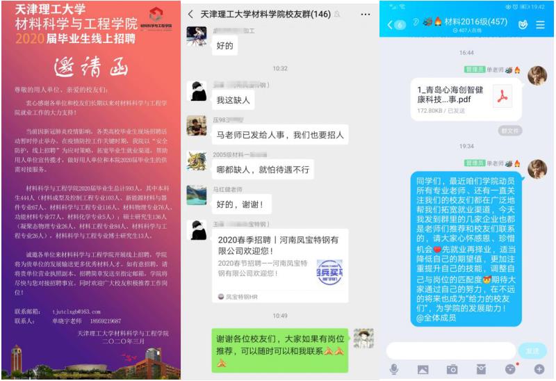 為認(rèn)真貫徹國務(wù)院常務(wù)會關(guān)于鼓勵吸納高校畢業(yè)生就業(yè)的工作部署,落實(shí)學(xué)校疫情防控期間畢業(yè)生就業(yè)推動相關(guān)工作要求,材料科學(xué)與工程學(xué)院號召全體學(xué)工隊(duì)伍、專業(yè)教師,動員校友資源積極行動起來,多措并舉、齊心協(xié)力推動畢業(yè)生就業(yè)工作,努力為2020屆畢業(yè)生就業(yè)保駕護(hù)航。