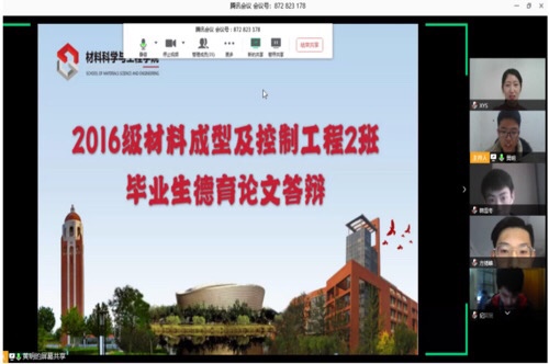 為貫徹落實學校思想政治工作三全育人“八大工程24項計劃”,完善學院學生德育教育體系,在全民抗“疫”的特殊時期,材料科學與工程學院面向2020屆畢業(yè)生開展“愛國力行?共鑄中國力量”主題德育論文“云答辯”,2016級班主任、輔導員參與其中。