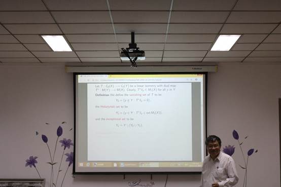 為提升學院師生教學科研能力和水平,12月16日,理學院邀請臺灣中山大學黃毅青教授為我院師生作題為《Shift operators on continuous functions》的專題報告。
