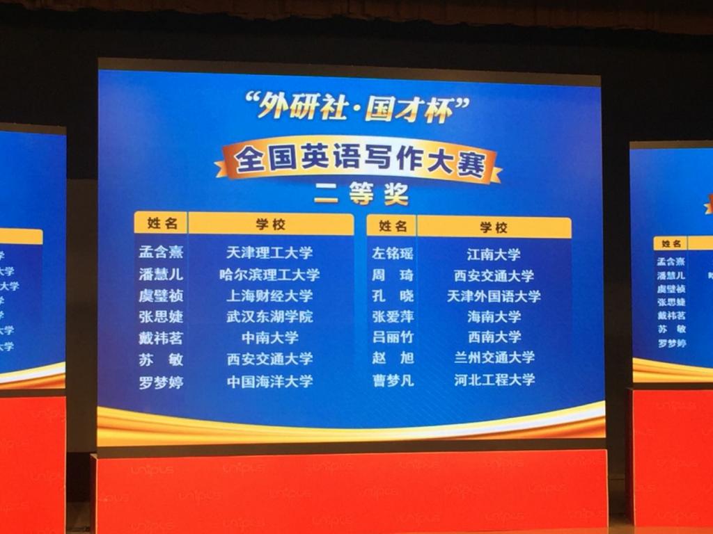 12月11日,2019“外研社?國才杯”全國英語寫作大賽總決賽在北京拉開帷幕。我校語言文化學院2018級英語專業孟含熹同學與眾多國內重點大學的選手同臺競技,獲得全國總決賽二等獎第一名,此前她曾以天津賽區復賽特等獎第一名的好成績進入全國總決賽。這是我校多年來在全國性的外語競賽中取得的重大突破,標志著我校的英語教學在培養學生的語言產出能力和人文素質等方面又上了一個新臺階。