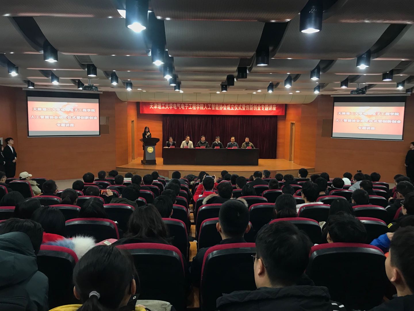 12月11日,電氣電子工程學院于理學院報告廳舉行“人工智能協會”成立儀式暨創新創業專題講座,教務處副處長張驚雷、電氣電子工程學院院長張寶峰、副院長呂聯榮、黨委副書記馮楊以及亞太機器人世界杯項目負責人韓心宇老師、中國區代表周兆達,“人工智能協會”的指導教師實驗室主任張鵬出席儀式,相關社團及專業的學生200名余名。