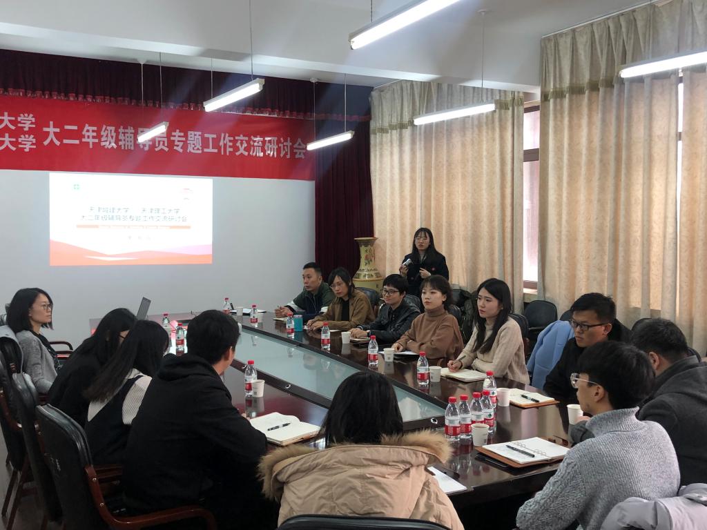 交流會上,天津城建大學環境與市政工程學院副書記魏婧老師詳細介紹了學院學工整體布局和學生黨建四個三教育管理體系;李丹等老師圍繞各自分管領域闡述了大二年級學生管理的思路和途徑。隨后,兩所高校的輔導員們暢所欲言,在前期充分調研的基礎上,緊密結合大二學生群體特點和成長成才需求,圍繞大二學生思想政治教育工作中的重點難點問題進行了交流和討論。雙方一致認為大二年級是大學生“學涯”中的關鍵期和轉折期,需要從黨團建設、班級管理、宿舍文化建設等方面加強對大二年級學生進行思政引導、學業指導和職業生涯規劃,并加強分類教育和引導。