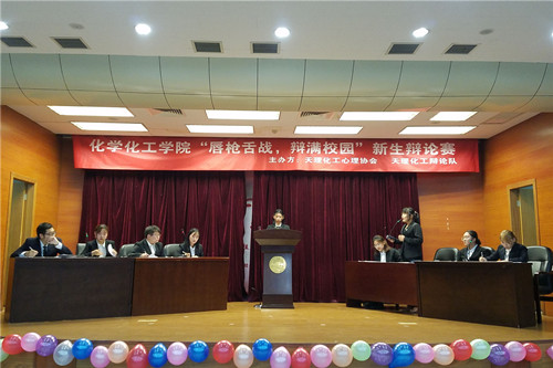 2019年11月4日晚,天津理工大學化學化工學院在理學院報告廳舉辦“唇槍舌劍,辯滿校園”新生辯論賽。本次辯論賽由天津理工大學化學化工學院心協主辦、特邀化學化工學院輔導員及各位社團主席作為評委蒞臨現場。