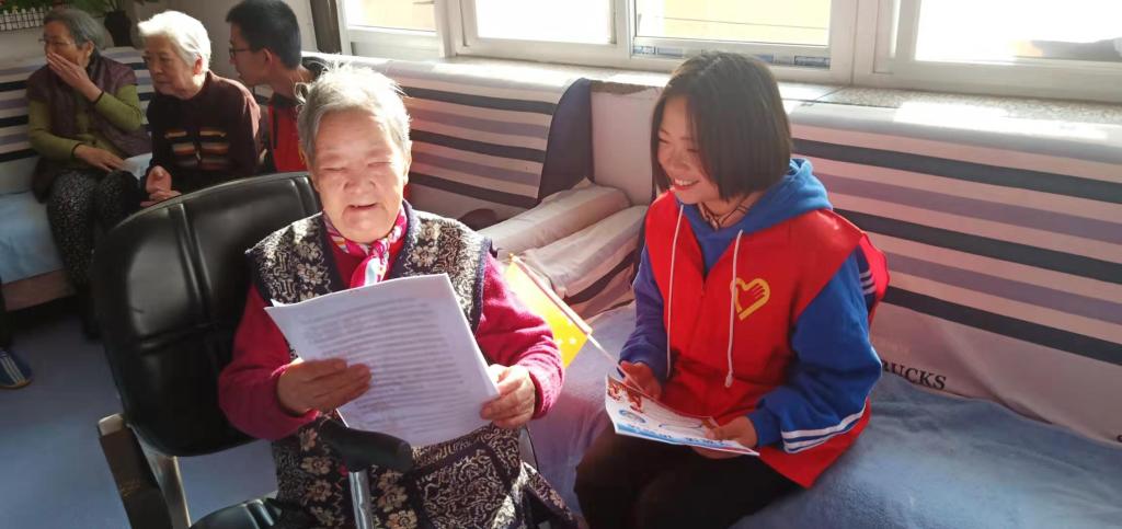 活動伊始,“螢火”服務隊用心籌劃了一場溫馨的文藝演出,經典相聲《武松打虎》為老人們送去歡聲笑語;手語歌曲《童年》穿越時光軌道,帶領聽力障礙的老人感受關愛與溫暖,回憶青春歲月的美好;手語操《國家》、合唱《我和我的祖國》飽含著濃濃的愛國情懷,將幾輩中國人的愛國深情用歌聲高唱。與此同時,“螢火”服務隊向老人們普及憲法知識,并結合事實案例為老人們甄別詐騙手段,提高老年人的維權意識和防騙意識,為老人們提供更全方面優質的志愿服務,贏得了敬老院老人與工作人員的稱贊。