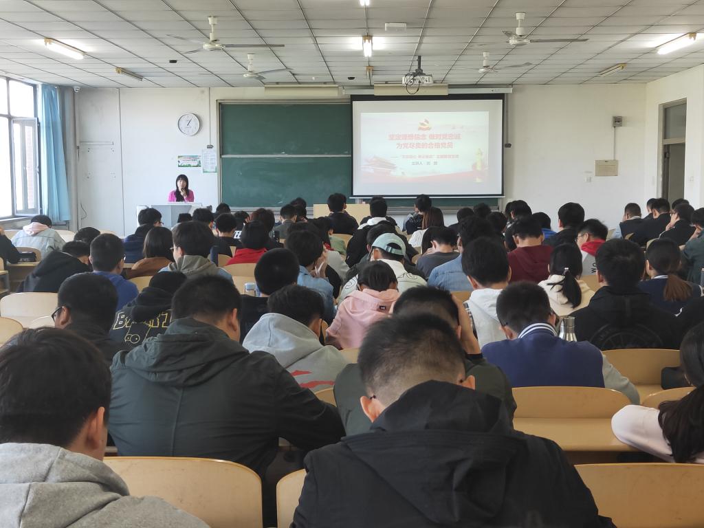 學院黨委書記于海波為學院全體師生黨員講授以“結合黨史國情詮釋初心使命”為題的專題黨課。本次黨課主要從知國情、明黨史的重要意義、主要內容、具體要求三個方面,把主題教育與慶祝新中國成立70周年結合起來,沿著“教育報國守初心”“立德樹人擔使命”“對標檢視找差距”“奮進有為抓落實”的總思路,緊密圍繞貫徹落實習近平總書記關于教育的重要論述和黨中央對教育的決策部署,以高度的責任感使命感和更加昂揚的精神狀態,投身教書育人事業,為黨育人、為國育才,突出黨的政治建設,努力做黨和人民滿意的“四有”好老師,把主題教育中激發出來的熱情,轉化為促進學院學科發展的強大動力,為加快推進教育現代化、建設教育強國、辦好人民滿意的教育不懈努力。