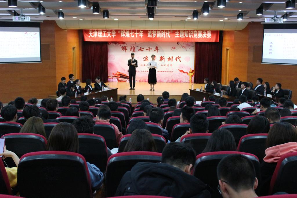 為慶祝中華人民共和國成立70周年,深入貫徹習近平新時代中國特色社會主義思想,于新學期伊始引導青年大學生重溫習近平總書記的愛國“三問”,學習了解祖國的新知識新精神、增強愛國意識、提高自身政治素養(yǎng),由校黨委學工部主辦,社會發(fā)展學院承辦、延安精神學習會協(xié)辦的天津理工大學“輝煌七十年 追夢新時代”主題教育活動之“祖國在我心中”主題知識競賽決賽于10月16日成功舉辦。