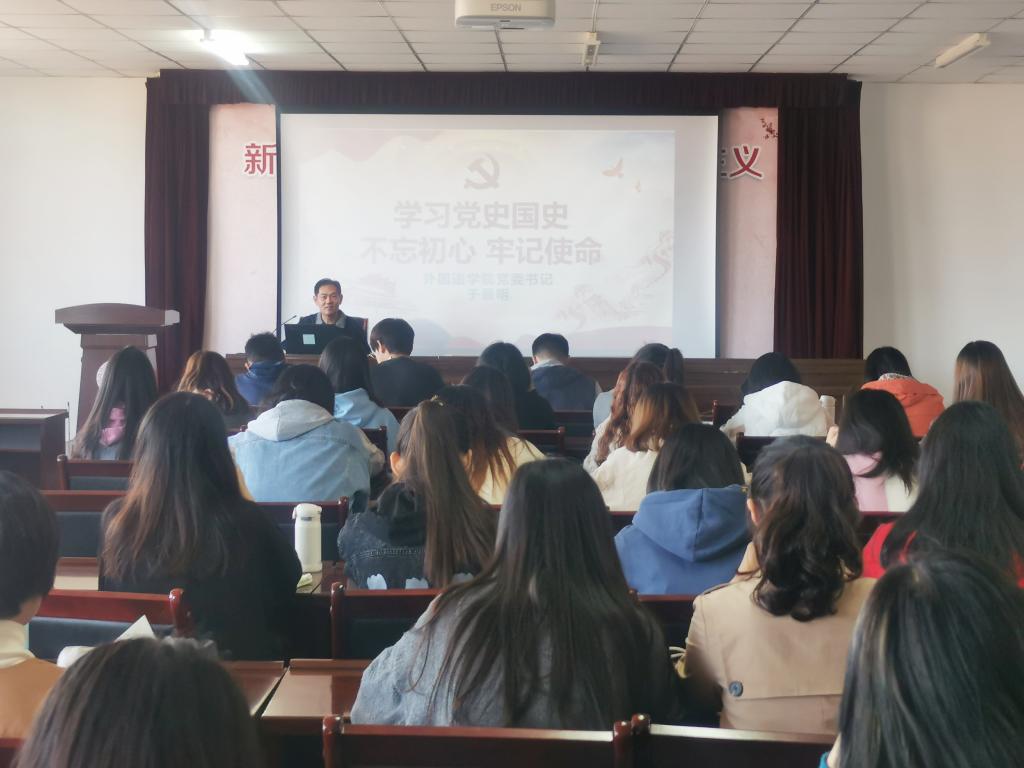 為深入學(xué)習(xí)貫徹習(xí)近平新時(shí)代中國特色社會(huì)主義思想和黨的十九大精神,推進(jìn)“不忘初心、牢記使命”主題教育落細(xì)落實(shí),筑牢黨性根基,明確責(zé)任擔(dān)當(dāng),10月14日,外國語學(xué)院成功舉辦初級(jí)黨校開班儀式暨“不忘初心、牢記使命”主題教育專題黨課,院黨委書記于景明出席開班儀式并為40余名入黨積極分子講授了黨課。