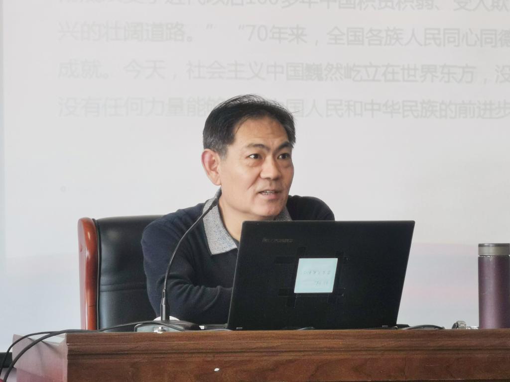于景明書記做了題為“學(xué)習(xí)黨史國史—不忘初心、牢記使命”的主題報(bào)告。報(bào)告以習(xí)近平總書記在慶祝中華人民共和國成立七十周年大會(huì)上的重要講話開篇,帶領(lǐng)同學(xué)們回顧了70年來全國各族人民同心同德、艱苦奮斗所取得的令世界刮目相看的偉大成就。緊接著,于書記講述了自1840年以來無數(shù)仁人志士為謀求民族獨(dú)立所進(jìn)行的艱辛探索和英勇斗爭,介紹了我們黨為實(shí)現(xiàn)人民解放、民族復(fù)興不忘初心、牢記使命所進(jìn)行的偉大革命,偉大斗爭。最后,于書記向入黨積極分子們提出了幾點(diǎn)要求,一是要牢固樹立“四個(gè)意識(shí)”,二是要堅(jiān)定“四個(gè)自信”,三是要堅(jiān)決做到“兩個(gè)維護(hù)”,努力成為德智體美勞全面發(fā)展的社會(huì)主義建設(shè)者和接班人。
