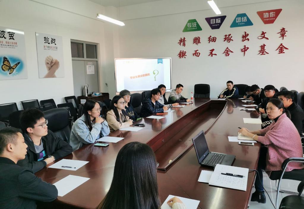 座談會上,馮楊老師從經濟形勢、市場環境和人才培養等方面為畢業生分析了當前的嚴峻就業形勢和就業困難原因,并介紹了學校、學院促進畢業生就業工作的做法和措施。各畢業班輔導員老師結合自身專業特點以及在推動就業工作中的難點,分析了各專業學生就業現狀,并就進一步推動就業工作提出了建議。畢業生代表根據自身求職的實際情況,談了就業需求、存在的困難以及下一階段的規劃。