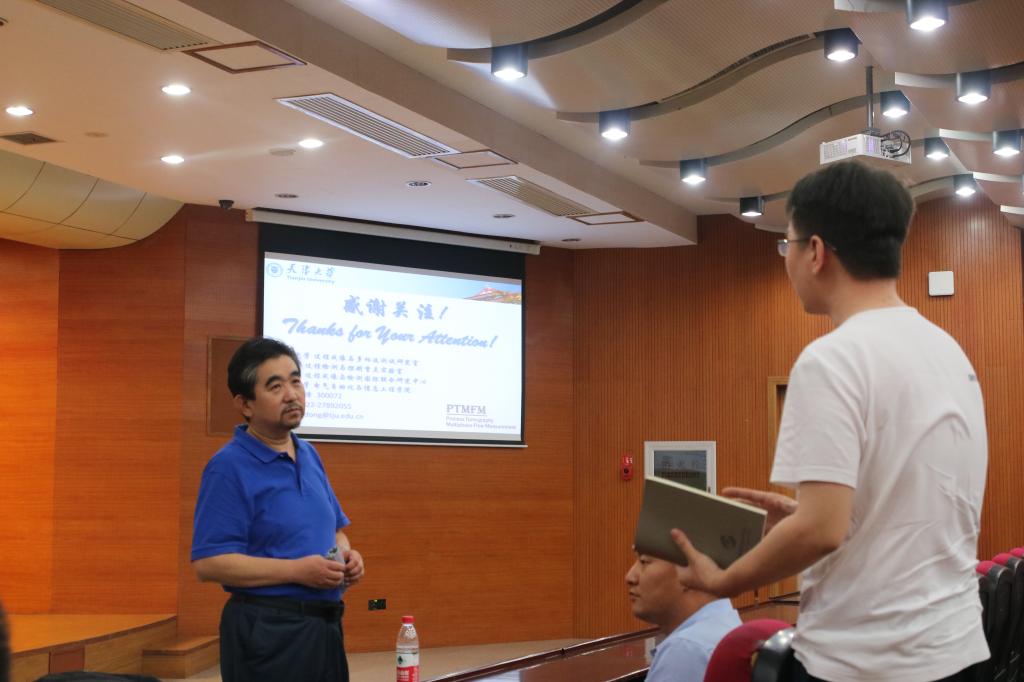 董峰教授做了題為“過程層析成像技術(shù)研究發(fā)展與應(yīng)用”的報(bào)告。報(bào)告內(nèi)容主要包括對過程層析成像(Process Tomography)概念、原理、特點(diǎn)及用途的介紹,同時(shí)董峰教授詳細(xì)講解了過程層析成像技術(shù)的歷史發(fā)展以及PT技術(shù)近年來在國內(nèi)外的新進(jìn)展,并為大家展示了其實(shí)驗(yàn)室目前的相關(guān)研究項(xiàng)目。這一新型過程測量技術(shù)已在工業(yè)上廣泛應(yīng)用,創(chuàng)新的方法新穎有趣,引起了師生們的廣泛討論和積極提問。在提問環(huán)節(jié),董教授與在場師生積極互動(dòng),耐心細(xì)致地解答疑惑。
