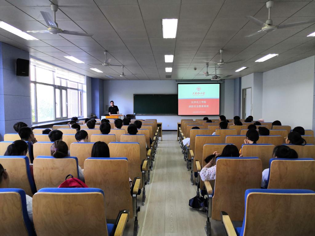 8月30日下午,化學化工學院聯合校保衛處在19號教學樓再次舉辦消防安全知識培訓,并開展了消防滅火實戰演練活動。化學化工學院2019級研究生新生96人參加了此次活動。
