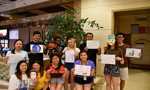 在為期三天的社會實踐中,每天晚上,實踐團師生都會在一起分享自己的出行感受,暢談自己對于中國形象和中國符號的認識。為了更直觀地體現(xiàn)“中國形象”和“中國符號”,7月11日晚,實踐團開展了以“我眼中的中國形象”為主題的繪制活動,留學生們通過繪畫、剪紙、繪制中國戲劇臉譜的方式來描繪自己心中的中國符號和中國形象。在一次次的交流互動中,中外同學不斷加深彼此之間的感情。