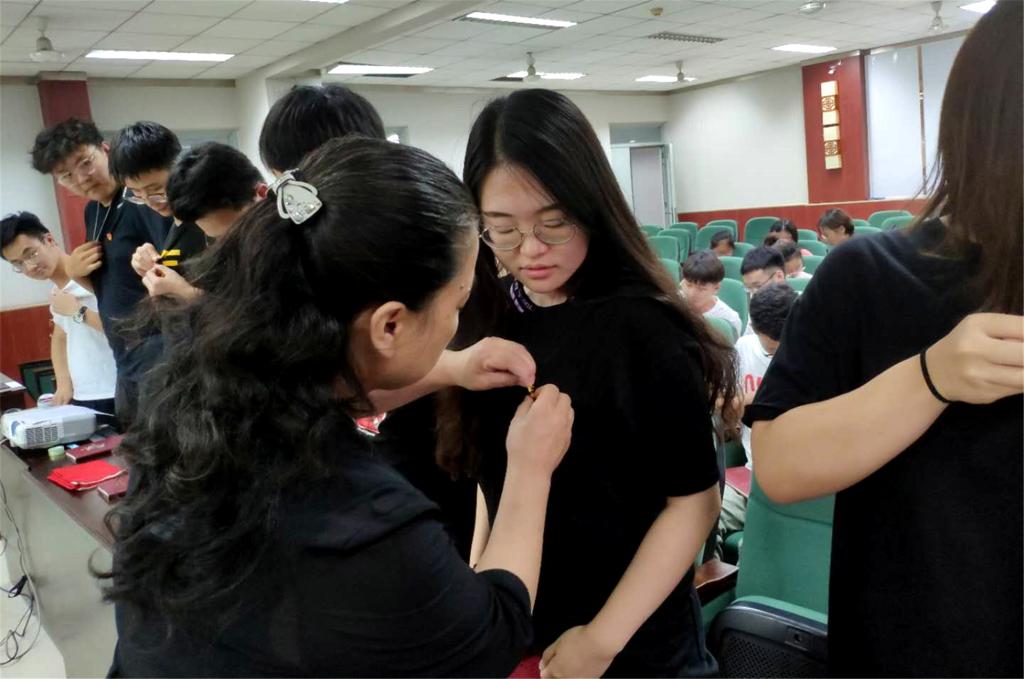 宣誓儀式上,黨委書(shū)記馬紅健宣讀了《關(guān)于材料科學(xué)與工程學(xué)院黨委批準(zhǔn)接收51名同學(xué)為中共預(yù)備黨員的決定》。之后,王悅陽(yáng)老師帶領(lǐng)51名新黨員莊嚴(yán)宣誓,他們慷慨激昂的聲音傳達(dá)出了對(duì)黨的無(wú)限忠誠(chéng)。隨后,老師們向各全體新黨員配戴黨徽和分發(fā)黨員學(xué)習(xí)筆記本。17級(jí)功材2班的周夢(mèng)軒代表全體新黨員發(fā)言,表達(dá)了加入黨組織的激動(dòng)之情,和要以黨員標(biāo)準(zhǔn)嚴(yán)格要求自己,為共產(chǎn)主義事業(yè)奮斗終身,決不辜負(fù)黨對(duì)青年人的殷切期望的決心。宣誓儀式后,黨委書(shū)記馬紅健為全體新黨員們做《我入黨了》專(zhuān)題黨課,并播放了學(xué)生表自編自導(dǎo)自演的黨史情景劇《可愛(ài)的中國(guó)》視頻。