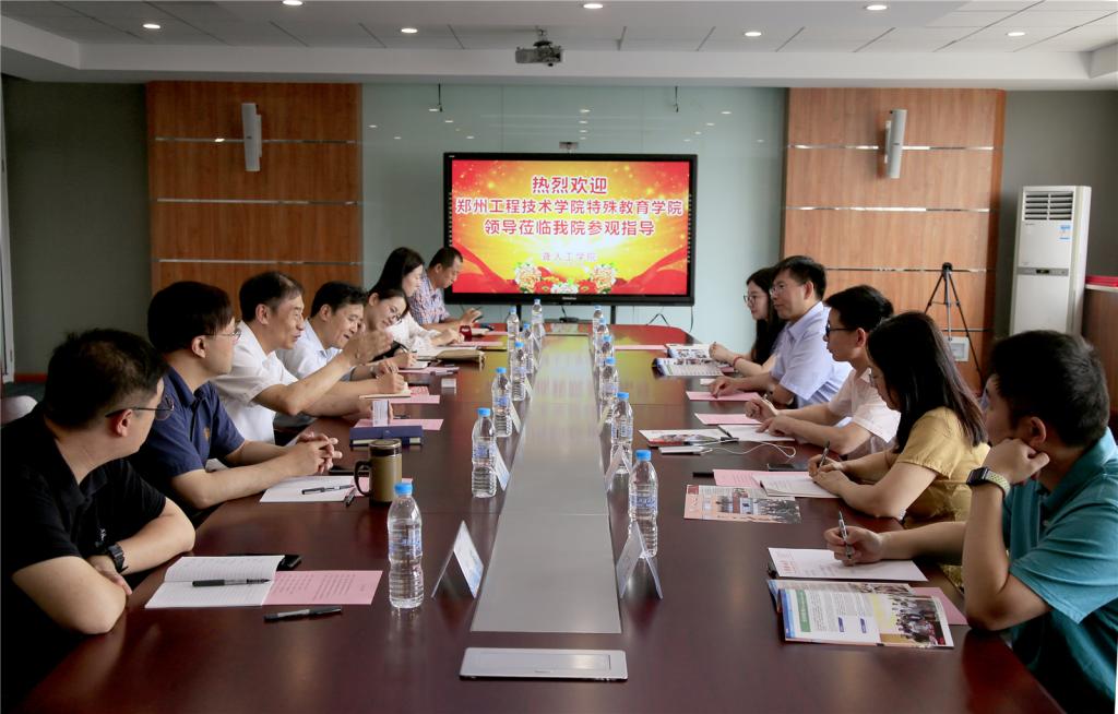 為進(jìn)一步加強(qiáng)雙方院校交流,推動(dòng)聾人特殊教育的發(fā)展,6月20日,鄭州工程技術(shù)學(xué)院特殊教育學(xué)院書記譚笑風(fēng)一行六人到聾人工學(xué)院進(jìn)行訪問,學(xué)院有關(guān)負(fù)責(zé)人以及相關(guān)教研室主任等接待了來訪賓客。