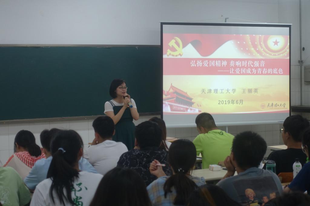為全面加強高校思想政治工作,深入學習宣傳貫徹習近平總書記在察時重要講話精神和學校思想政治理論課教師座談會精神,落實“弘揚愛國精神 奏響愛國三問時代強音”系列主題教育活動要求,市委教育工委、市教委開展2019年天津市優秀輔導員高校巡講愛國奮斗精神活動。6月12日,我校環境科學與安全工程學院輔導員王麗英作為巡講團成員開展了以“弘揚愛國精神 奏響時代強音”為主題的主題宣講。