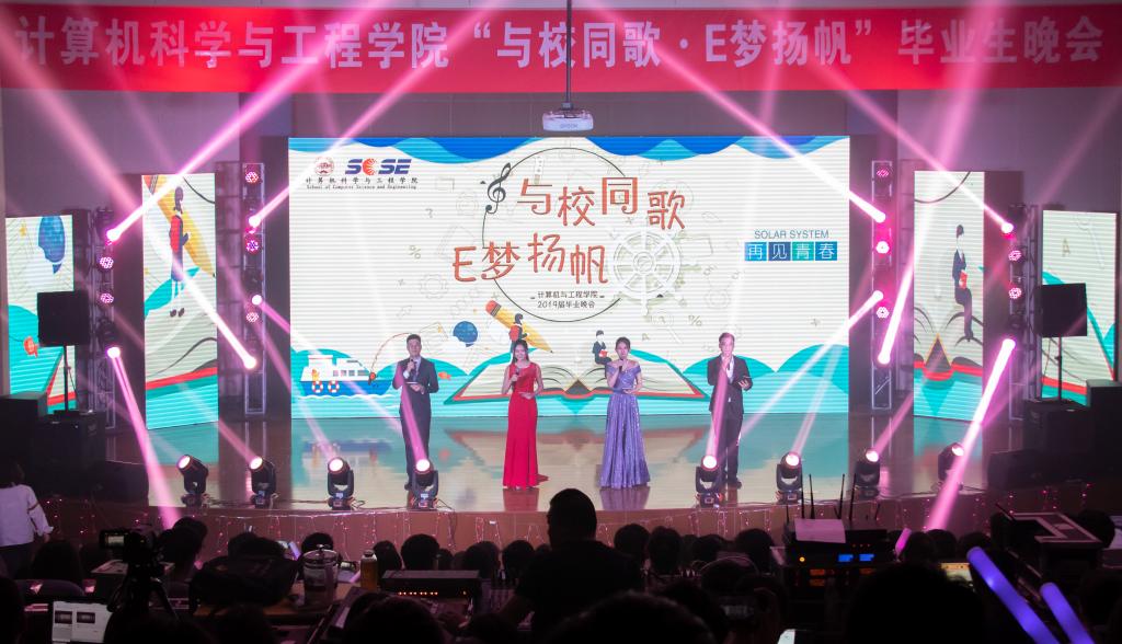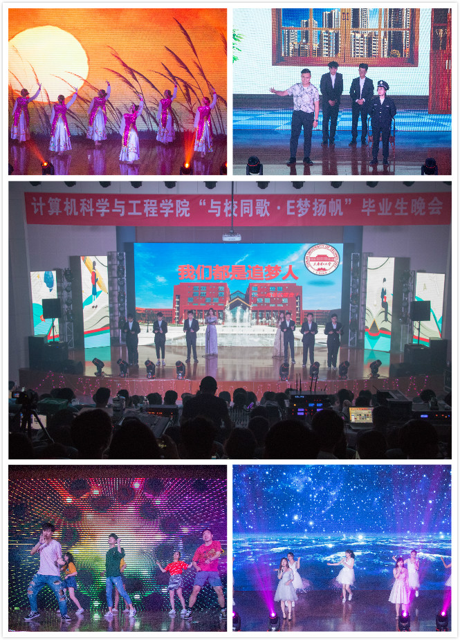 5月17日,環安報告廳燈光璀璨、熱鬧非凡,計算機科學與工程學院“與校同歌·E夢揚帆”畢業生晚會隆重舉行。學院黨政負責人、各年級輔導員老師及2019屆畢業生共同觀看了此次晚會。