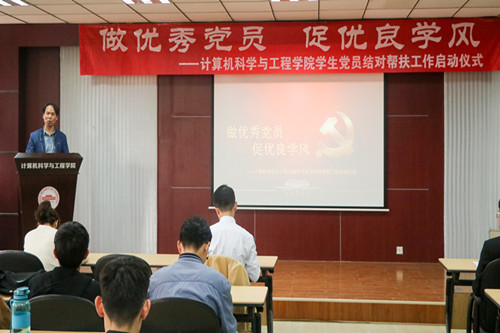 為深入學習貫徹習近平新時代中國特色社會主義思想,發揮黨員先鋒模范作用,促進學院學風建設,計算機科學與工程學院于4月23日召開“做優秀黨員,促優良學風”——學生黨員結對幫扶工作啟動儀式。學院相關負責人、輔導員及百余名學生黨員和發展對象參加本次活動。