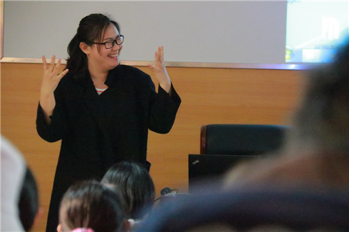 楊博士講述她童年不幸的遭遇,4歲半因發燒打針致耳聾,再也聽不到世界上美妙的聲音。但是,她不甘于此,依靠自身努力,進入首都師范大學讀書,后來又遠赴美國,在世界第一的聾人大學加勞德特大學獲得聾人教育博士學位,一直到2007年,她不斷克服常人無法想象的困難,終成為英國中央蘭開夏大學高級講師。隨后楊老師向大家介紹英國中央蘭開夏大學畢業生就業情況,展示就業培訓服務和多媒體課程資源,講解就業能力發展模式和就業能力的關鍵因素。趙虹博士講述了她在平凡的日子里做的不平凡的事情。大學畢業工作六年后辭職,前往韓國留學三年。回國之后,邊學習邊創業,成立自己的公司,教授手語,舉辦夏令營,倡導聾健相互學習,相互幫助,并為我們展示了公司的優秀拍攝作品。
