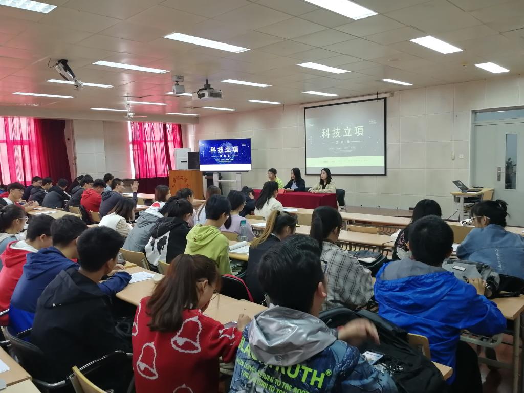 活動伊始,輔導員從學校科技立項參與方式、申報書撰寫要求,以及對于學生后期成長的重要意義等方面進行了詳細講解,勉勵同學們踴躍參加,積極申報,以賽促練,在競賽中鍛煉和提升科研能力。往屆大創項目優秀指導教師宗雪平老師及參賽學生代表,結合自身經歷,從項目選題、申報書撰寫和收獲感悟等三方面進行了詳細講解,并向同學們展示了往屆獲獎項目和研究成果,強調參與科技立項不僅僅是為了獲獎,更多的是培養濃厚的科研興趣和嚴謹的科學精神,在實踐中提升自己的科研水平。參會學生們認真聆聽,現場氣氛熱烈。