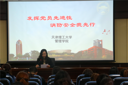 管理學(xué)院團委書記李蕊老師從增強黨員四個意識的角度出發(fā),向全體黨員提出了必須守住安全底線的要求,并結(jié)合火災(zāi)案例分析,讓同學(xué)們切身體會到“安全問題無小事”。本科生第一黨支部的李志展同學(xué)向大家宣讀了消防安全倡議書,號召大家提高防火意識,自覺遵守“安全第一,預(yù)防為主”的方針,并提出了不在宿舍吸煙、不使用違章電器、不在陽臺堆放雜物等具體行為守則。最后,黨員同學(xué)們集體簽署了安全承諾書,表達了自己對于消防安全問題嚴(yán)陣以待的態(tài)度,大家紛紛表示要踐行黨員模范帶頭作用,主動熄滅身邊的消防安全隱患。