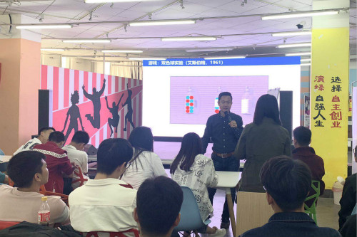 本期沙龍邀請莘海東老師為大家做題為《選擇和創造自己喜歡的職業》的講座。莘老師首先介紹了自己的成長之路,通過“雙色球實驗”、“旅游的情境”等活動,了解同學們的就業和創業思維。他以自己的切實經歷為例,鼓勵同學們選擇和創造自己喜歡的職業,樹立自主就業和創業的思維,把有價值的想法變成現實;創業要注重人脈、勇于面對困難、積極尋求解決方法,最終找到或創造自己喜歡的職業。講座后,同學們踴躍提出自己的就業與創業的想法,積極與莘老師互動交流,現場氣氛十分熱烈。