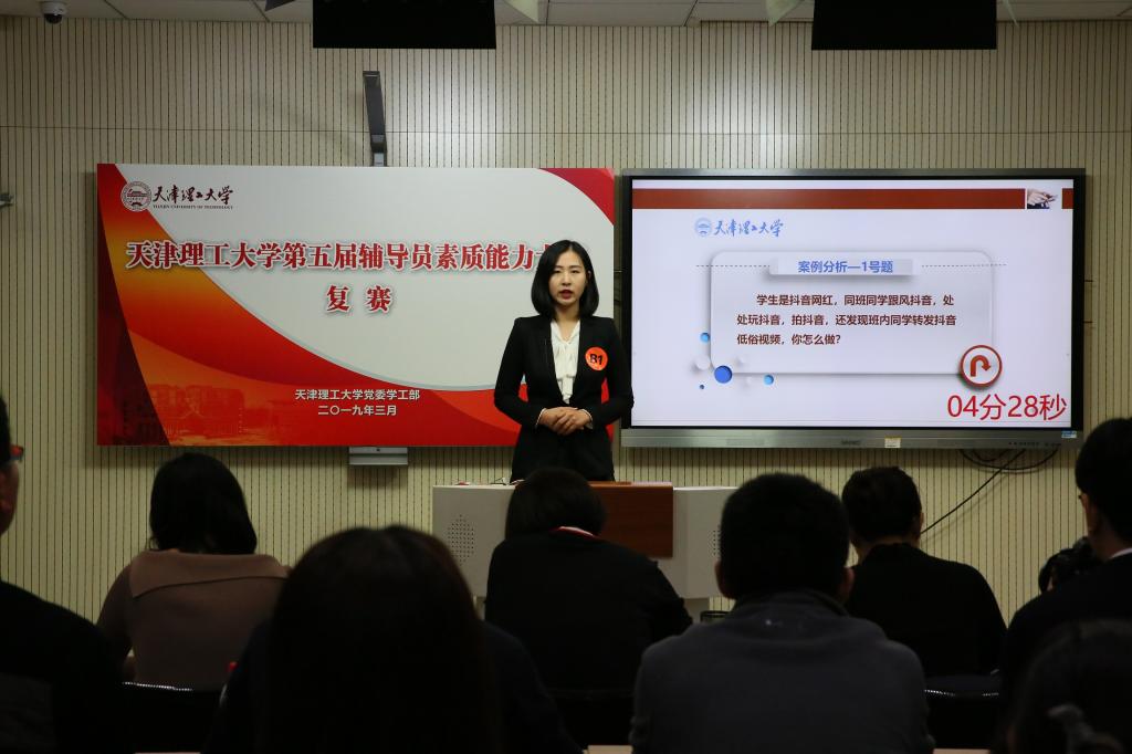 為進一步夯實輔導員工作基礎、提升隊伍專業素養,推動我校思想政治教育工作隊伍職業化、專業化發展,3月29日下午,我校第五屆輔導員素質能力大賽在27號教學樓A401、A402舉辦,校黨委副書記杜長有、黨委學工部相關負責同志及學院輔導員代表、學生代表共計100余人到場觀賽。在全國和天津市輔導員素質能力大賽中取得佳績的校內外優秀輔導員擔任復賽評委。