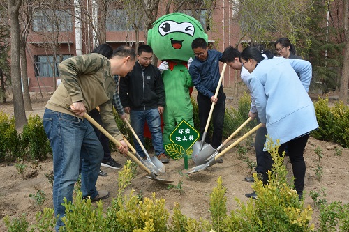 本次環安節以“植樹”的方式開啟環保之旅,師生們共同在學院門前種下由張啟龍提供的三百余株小葉黃楊和幾十余株月季,承載著美好情誼與希望的小樹苗相信在不久的將來會成長為枝繁葉茂的“校友林”,向優秀校友一樣,蓬勃發展。