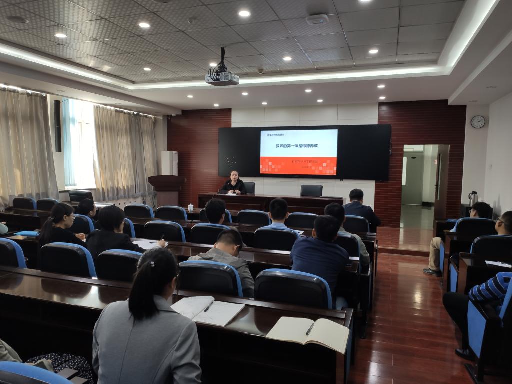 學(xué)院黨委書記馬紅健從習(xí)近平總書記在北京師范大學(xué)師生代表座談的講話內(nèi)容講起,給青年教師介紹了“四有好老師”的標(biāo)準(zhǔn)以及《新時代高校教師十項準(zhǔn)則》、《關(guān)于全面深化新時代教師隊伍建設(shè)改革的意見》、全國教育大會關(guān)于教師隊伍建設(shè)等內(nèi)容,介紹了材料學(xué)院教師課堂正、負(fù)面語言清單。隨后,馬紅健與青年教師分享了自己做學(xué)生培養(yǎng)工作的理念和體會,從“老師如何對待學(xué)生、教師的價值、教育無處不在及因材施教是教師的能力”幾個方面,介紹了高校教師職業(yè)的使命和責(zé)任。最后,她從“教師的任務(wù)是立德樹人,而樹人要先樹己”,給青年教師的師德建設(shè)提出了要求。