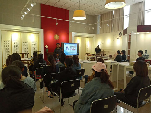 劉老師用專業(yè)的理論知識(shí)、大量的實(shí)物作品勾勒出詩(shī)書(shū)畫(huà)印的內(nèi)在聯(lián)系和知識(shí)框架;結(jié)合漢字背后的文化故事,帶領(lǐng)同學(xué)們領(lǐng)略漢字之美,禮敬中華文化。劉老師講到漢字中蘊(yùn)含中華五千年的獨(dú)特魅力,作為漢語(yǔ)言文化專業(yè)的學(xué)生要有學(xué)好中華文化的信心和傳承發(fā)揚(yáng)中華文化的信念。在平日里自覺(jué)開(kāi)展“學(xué)思想、誦經(jīng)典、樹(shù)家風(fēng)”的學(xué)習(xí),堅(jiān)定文化自信,傳播中國(guó)好聲音。