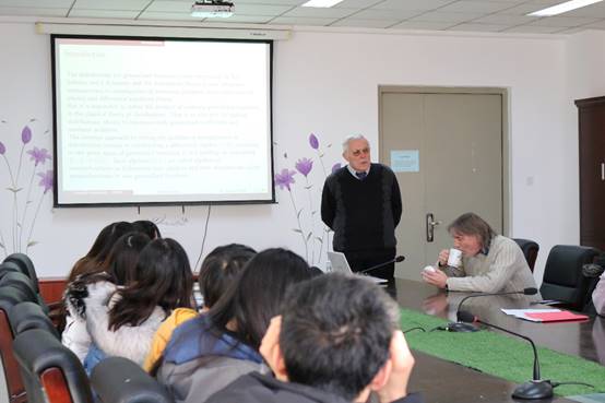 報(bào)告會(huì)上,Anatolij Antonevich講述了分布函數(shù)的發(fā)展歷史,重點(diǎn)介紹了分布函數(shù)的乘法問題及自己在該方面研究的最新成果。Andrei Lebedev教授通過函數(shù)的反函數(shù)等經(jīng)典案例介紹了譜理論的發(fā)展現(xiàn)狀,并詳細(xì)討論了譜的連續(xù)性。在場(chǎng)師生認(rèn)真聆聽了學(xué)術(shù)報(bào)告,深受學(xué)者精益求精的科研精神鼓舞。
