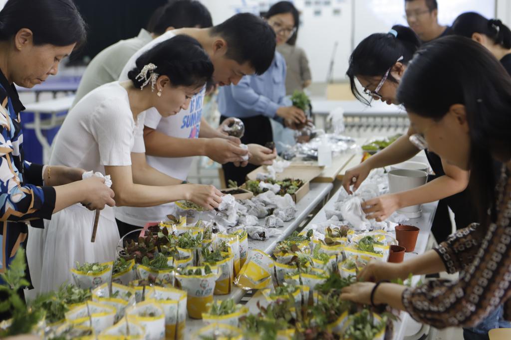 學院向全體教職工發出“踔厲篤行同耕耘 履踐致遠向未來”一封信,向學院全體教職工致以節日最真摯的祝福和最誠摯的問候,并肯定了每位教職工都是學院的脊梁、是學院的財富,感謝大家在學院發展過程中付出的汗水和心血,希望大家不忘初心,踔厲奮發、砥礪前行,不斷續寫教育強國篇章。學院邀請愛爾眼科醫院的專業醫師上門為教師們開展科普講座、眼部健康檢查和義診活動,護航“人類靈魂工程師”的健康。學院工會組織開展了“微景觀·大世界”植物微景觀活動。教師們精心挑選容器、綠植、鋪面石和裝飾物,通過親自填土、配色、種植、搭配,全身心地創作自己的“盆中花園”,既放松了身心,陶冶了情操,也提升了滿滿的幸福感。