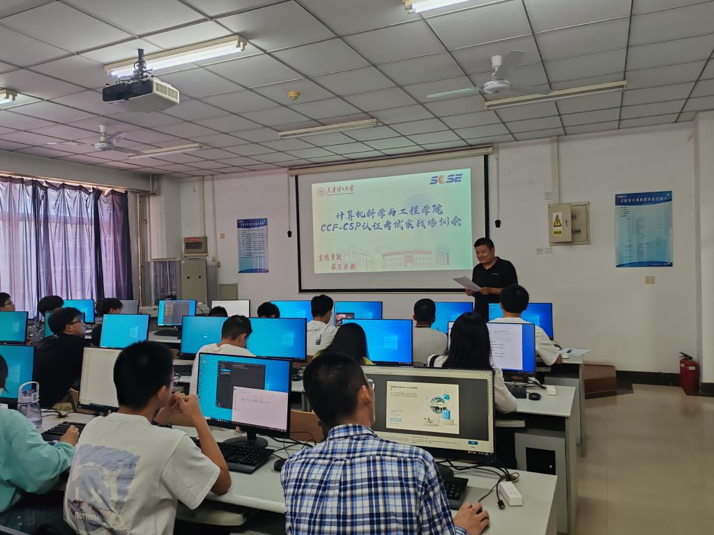 近日,計算機科學與工程學院舉辦了CCF-CSP認證考試實戰演練培訓會。學院實驗中心負責教師、科創教師代表和各年級學生代表參加會議。