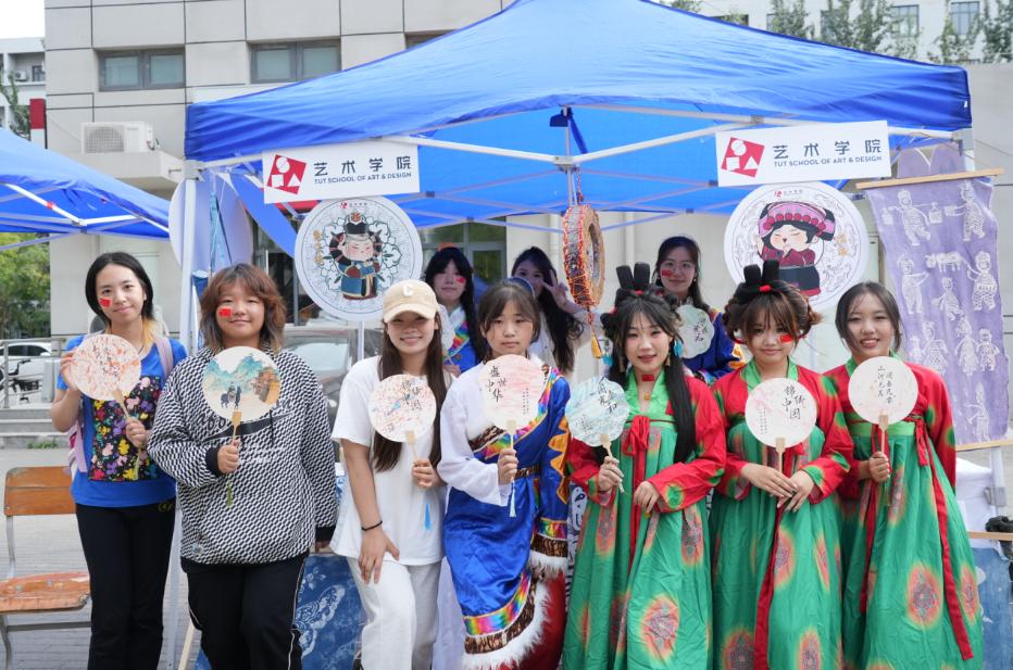 在學校2024年民族團結進步月成果展上,學院承辦蒙古族、土家族、瑤族三個少數民族的作品展,通過現場制作民俗紋樣扎染作品、漆扇等文化創意展品,展現深深民俗韻、濃濃愛國情。