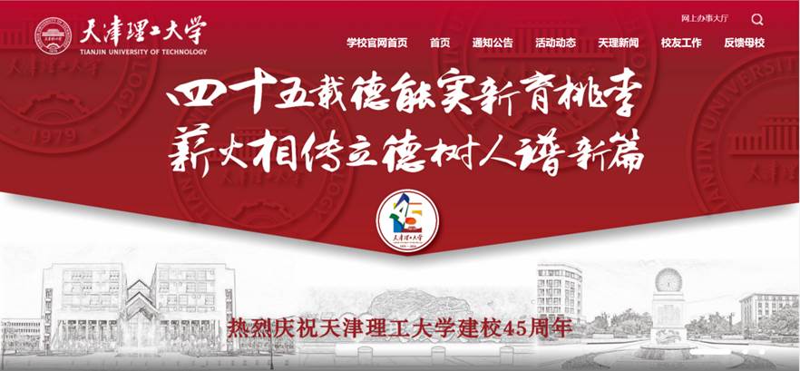 天津理工大學建校45周年紀念活動專題網站https://tut45.tjut.edu.cn/,同步推出手機端。網站開設【通知公告】【活動動態】【天理新聞】【校友工作】【反饋母?!俊敬笫掠洝俊咀8L炖怼科叽蟀鍓K。廣大師生校友及社會各界人士可以在此注校慶動態,回顧學校45年發展歷程,追憶求學時光,共敘歲月芳華,為學校建設發展助力護航。