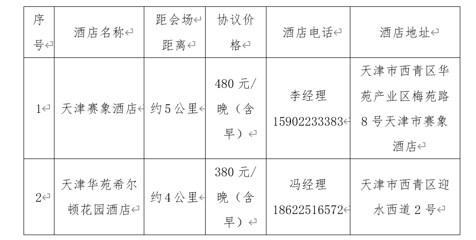 注:撥打酒店電話,報(bào)“參加天津理工會議”可享受協(xié)議價(jià)格。房源緊張,請參會代表提前預(yù)訂。