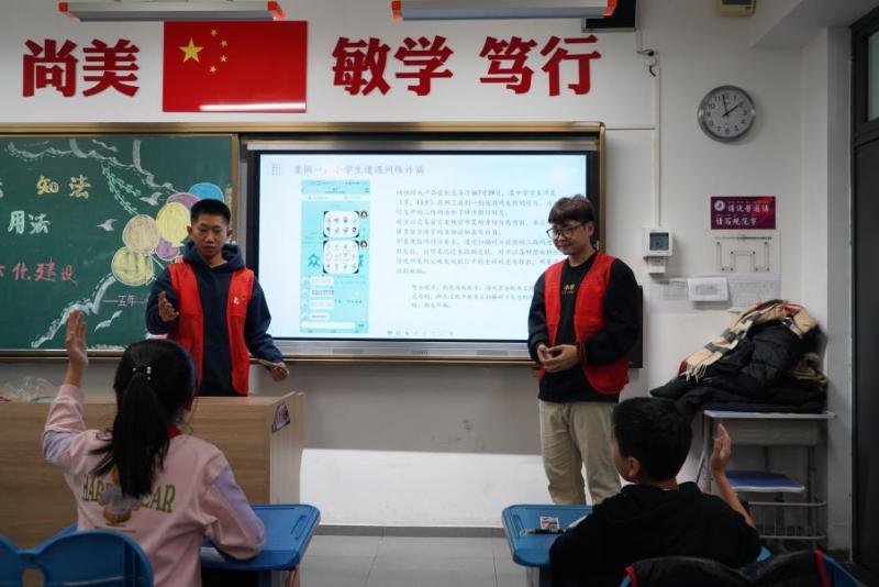 青年大學生還為小學生們講解了《未成年人網絡保護條例》,從制定條例的重要意義、未成年人遭遇網絡不法侵害時如何有效進行維權、未成年人如何合理使用網絡等多個方面展開講解,還現場演繹了根據小學生行為特點和現實案例改編的網絡詐騙模擬情景劇,引發了同學們陣陣歡笑,也讓同學們直觀感受到網絡安全風險和不良網絡言論可能引發的嚴重后果,引導大家文明上網、合法合理合規用網。
