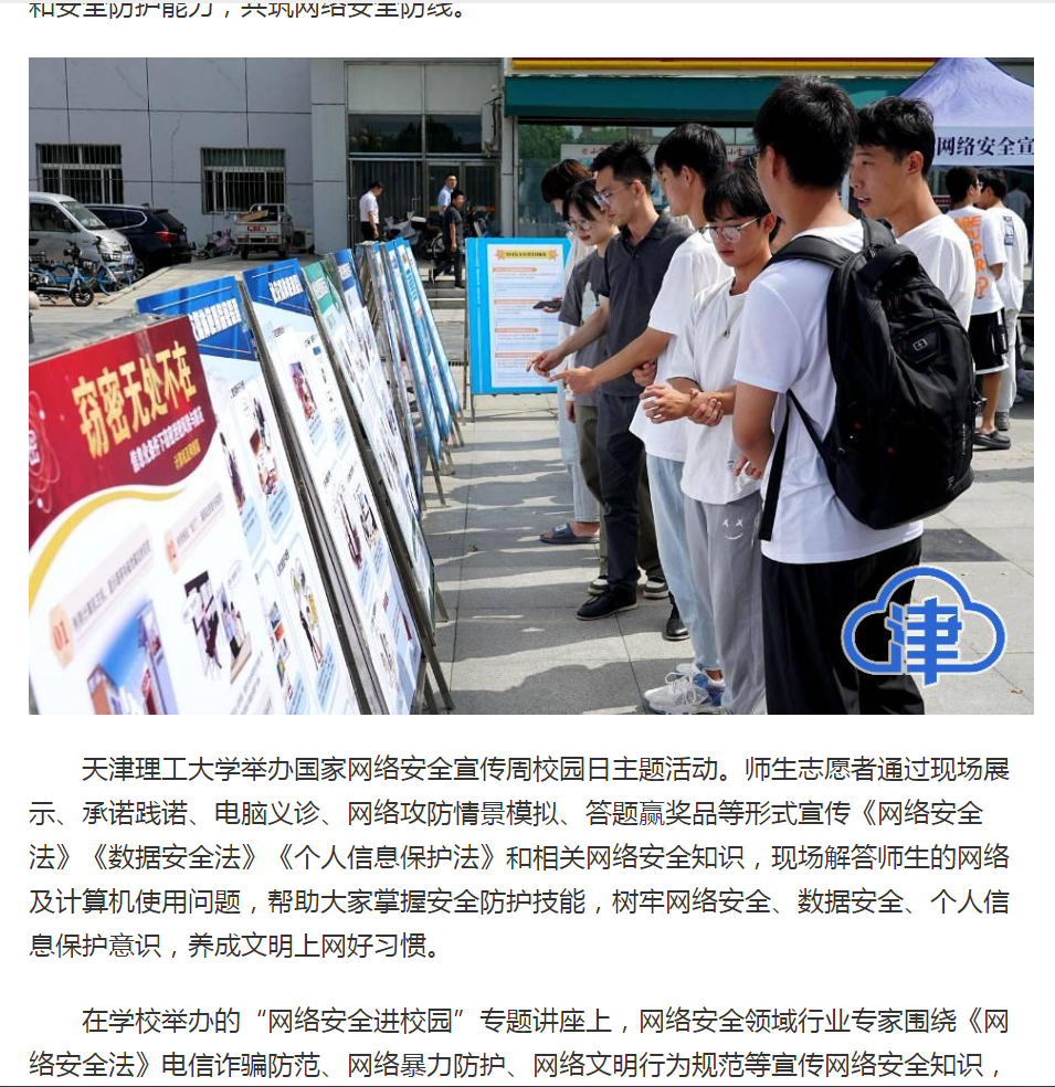 9月13日,津云報道我校舉辦國家網(wǎng)絡(luò)安全宣傳周校園日主題活動。報道如下: