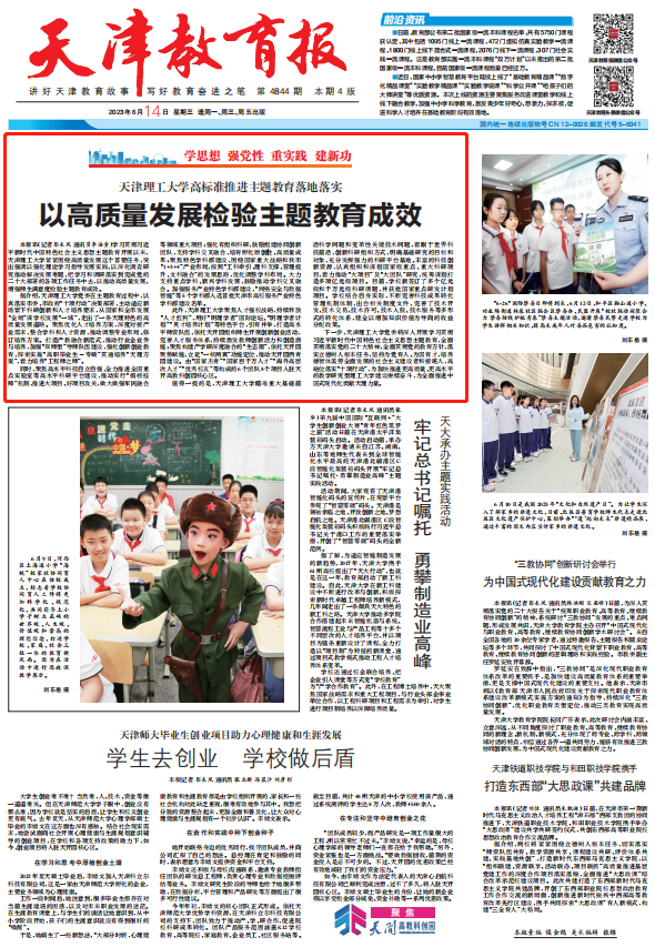 據介紹,天津理工大學黨委在主題教育過程中,認真落實市委、市政府“十項行動”決策部署,主動適應新場景下科研創新和人才培養要求,從國家和全市發展“全局”謀學校發展“一域”,走出了一條天理特色的高質量發展道路。聚焦優化人才培養方案,深度對接產業需求,整合學科和人才資源,推動調整專業布局、修訂培養方案。打造產教融合新范式,推動行業企業參與培養,加強“雙師型”導師隊伍建設,強化創新創業教育,探索實施“高職畢業生-專碩”貫通培養“天理方案”,著力培養“工程師之師”。