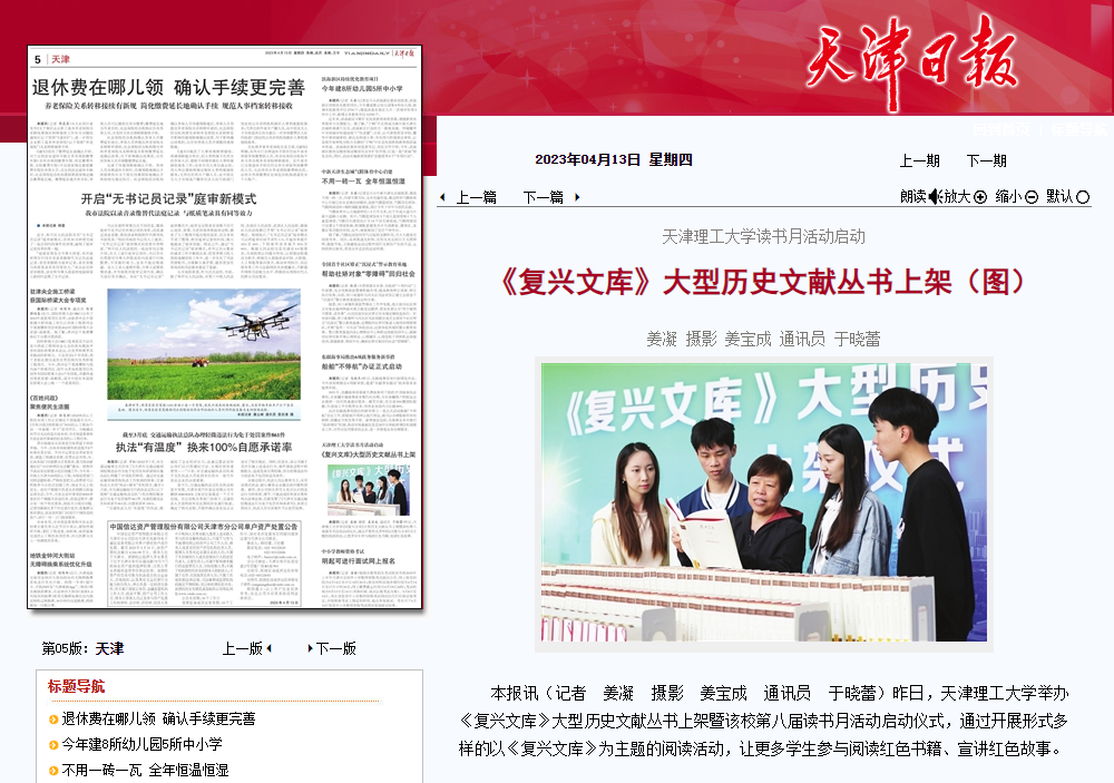《天津日報》——天津理工大學讀書月活動啟動《復興文庫》大型歷史文獻叢書上架