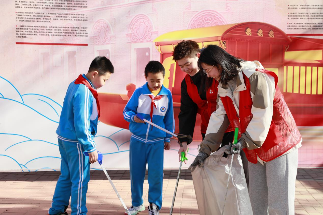 志愿者與小學生攜手開展衛生清掃活動