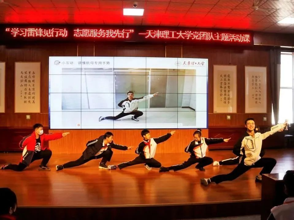 志愿者與小學生開展課堂互動——讀懂航母專用手勢
