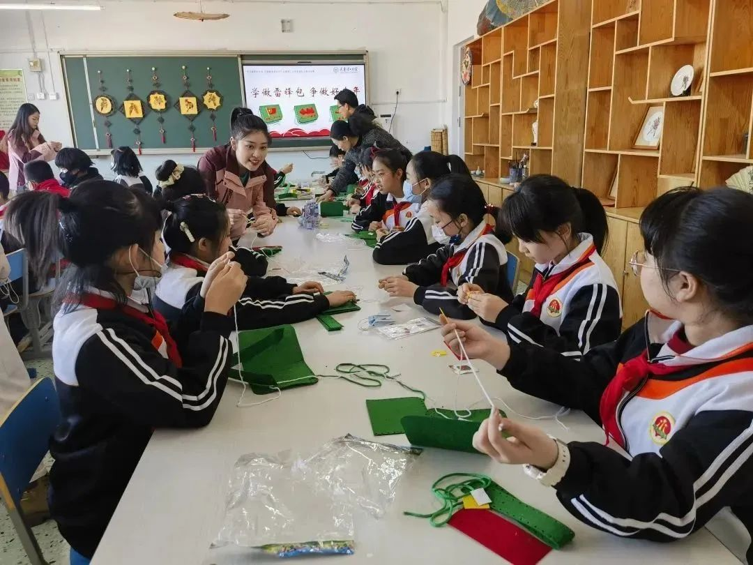 志愿者教小學生制作雷鋒包