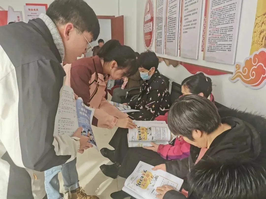 志愿者向社區居民發放科普知識宣傳手冊