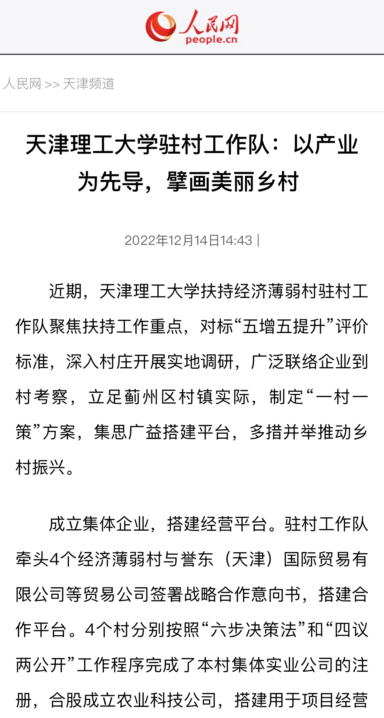 12月14日,人民網關注報道我校派駐薊州區下窩頭鎮扶持經濟薄弱村駐村工作隊,聚焦扶持工作重點,對標“五增五提升”評價標準,深入村莊開展實地調研,廣泛聯絡企業到村考察,立足薊州區村鎮實際,制定“一村一策”方案,集思廣益搭建平臺,多措并舉推動鄉村振興的先進事跡,內容如下: