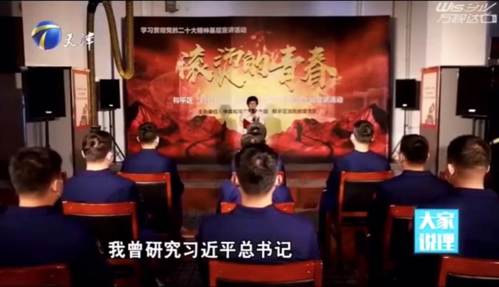 11月29日,天津電視臺《大家說理》欄目播出我校馬克思主義學(xué)院教授晉利珍走進(jìn)和平區(qū)勸業(yè)場消防救援站,參加由和平區(qū)委宣傳部聯(lián)合天津市社科聯(lián)開展的“滾燙的青春”主題宣講活動(dòng),宣講黨的二十大精神,講述新時(shí)代青年為什么選擇奮斗,內(nèi)容如下: