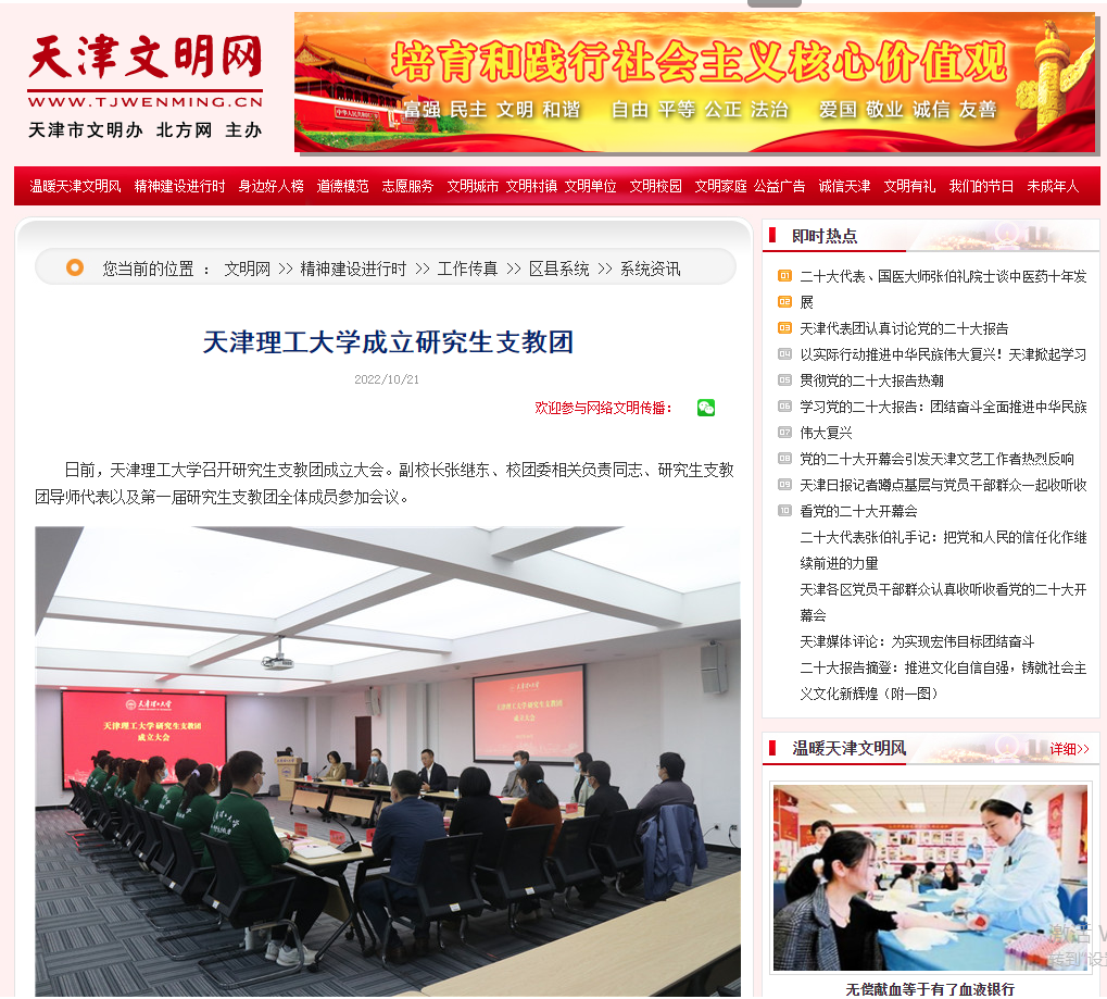 日前,天津理工大學召開研究生支教團成立大會。副校長張繼東、校團委相關負責同志、研究生支教團導師代表以及第一屆研究生支教團全體成員參加會議。