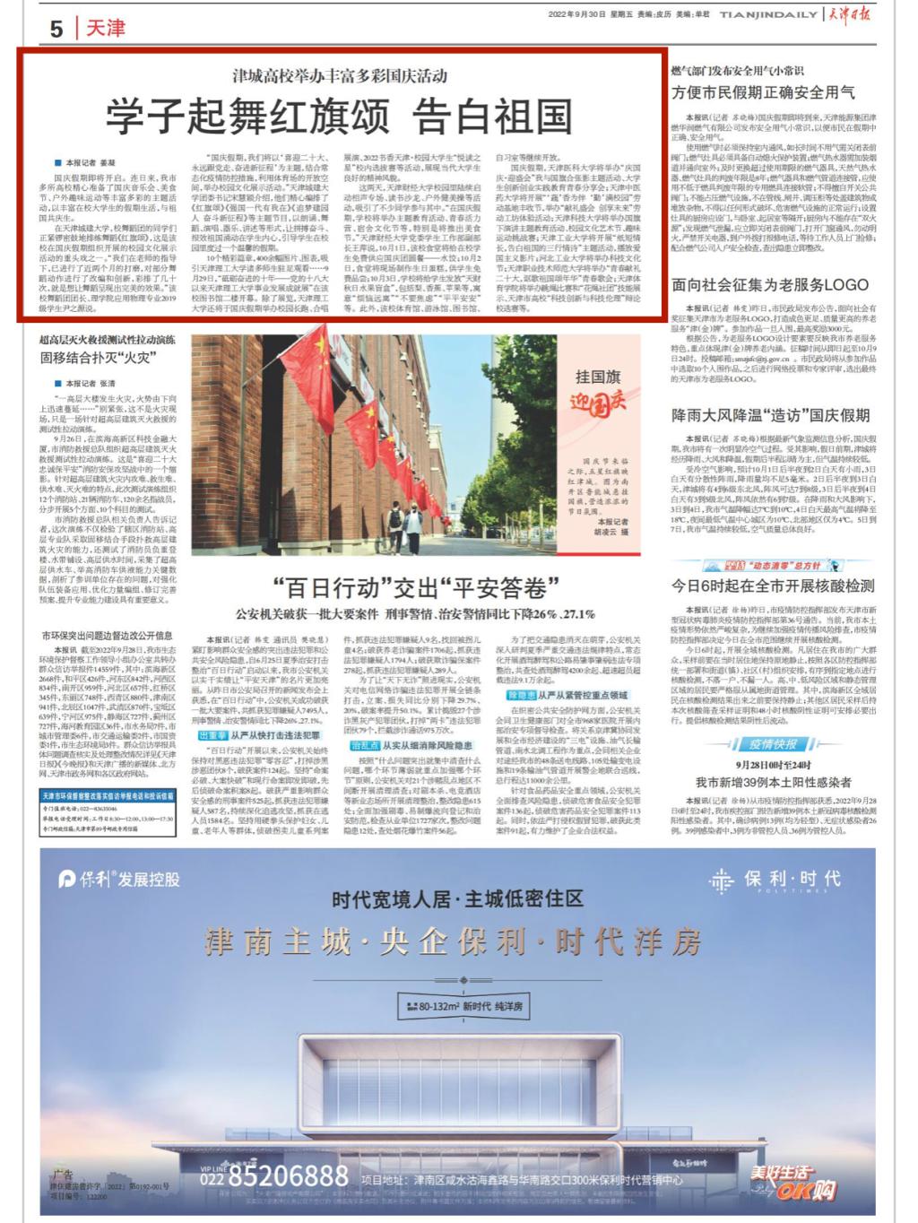 9月30日,《天津日報》第5版報道我校為慶祝中華人民共和國成立73周年,豐富廣大師生課余文化生活,舉辦一系列豐富多彩的活動,內容如下:
